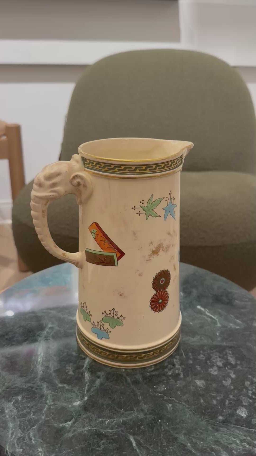 Royal Worcester porcelain pitcher with elephant handle and gold leaf designs